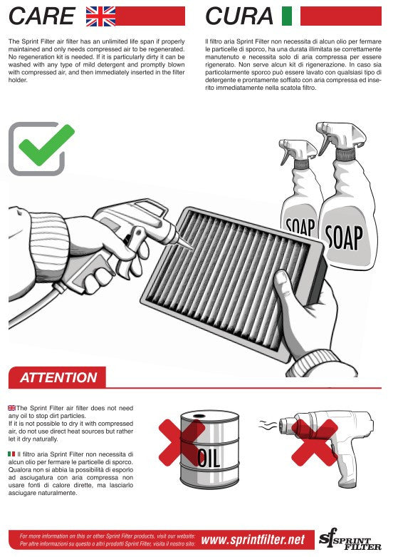 - Uspješna trkaća povijest: S više od 65 godina iskustva u proizvodnji zračnih filtara i uspjesima na najvišoj razini natjecanja, uključujući MotoGP, Moto3 i World SBK, Sprint Filter nudi najvišu kvalitetu.